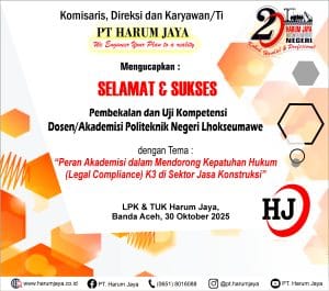Banda Aceh, 29 Oktober 2025 – Sebagai tindak lanjut dari Nota Kesepahaman (MoU) dan Perjanjian Kerja Sama (MoA) yang telah terjalin sejak 2022, PT Harum Jaya bersama Politeknik Negeri Lhokseumawe ...